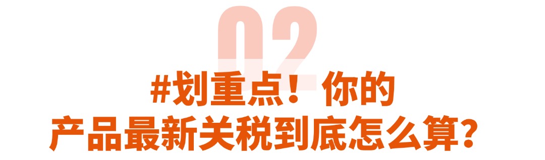 解读:(在301关税范围的商品超过1/3的商品,重点关注)这类产品之前已经被301关税“锤”过一轮了,现在计算方式是“基础税率 + 301税率 + 10%”。因为少了之前的两项10%关税,实际总税率还是降了!