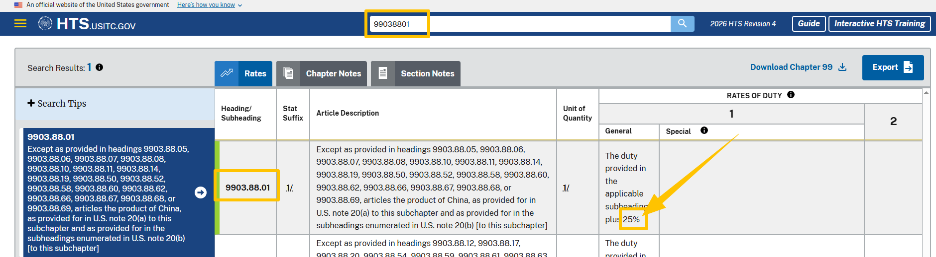 将鼠标悬停在“1/”上,系统会提示你去看另一个编码,比如 9903.88.01。